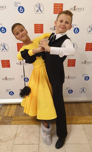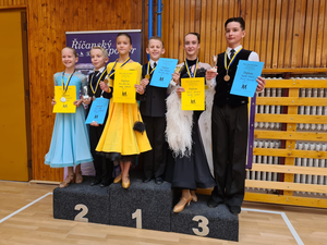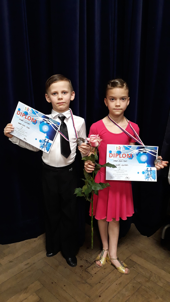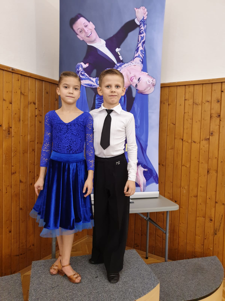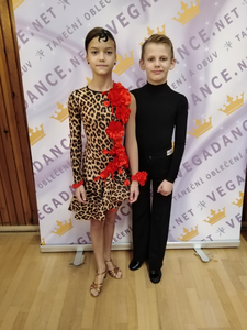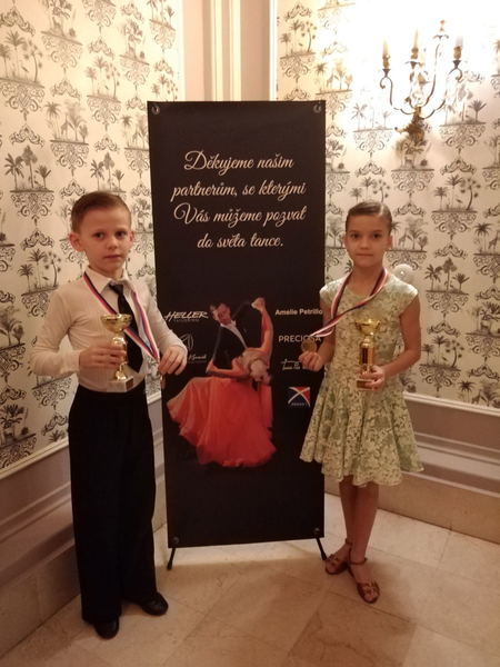 Je nám 9 let a tančíme spolu rok. A proč zrovna sportovní tanec? Protože nás to strašně baví. Tanec není jenom fyzický pohyb, ale také prožitek, pocit, výraz a prostředek komunikace. Za tento rok v soutěžích jsme získali 23 medailí: 11x zlatých, 5x stříbrných, 7x bronzových a 5 pohárů. Náš vzor je pár Martin Dvořák a Zuzana Šilhánová, Daniel Kecskeméti a Barbora Fellinghauerová. Velký díky rodičům za podporu a také trenérům za přípravu.