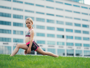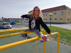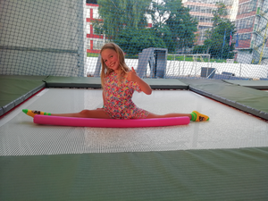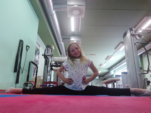 Markétka je všestranná, baví ji spoustu sportů, cvičí prakticky pořád - doma na šále, gymnastiku. Je jí 7 let. .... Chodí do mažoretek, gymnastiky, jezdí na koni (miluje zvířata), začala nyní s pole dance a již rok ji baví také fly jóga a cvičení na šále. Občas si zaběhne i závody Spartan kids. :) Sport je její obrovská radost.