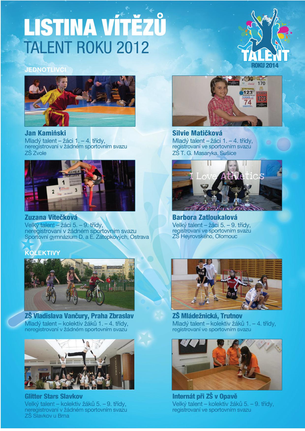 Výsledky ročníku 2012 soutěže Talent roku.